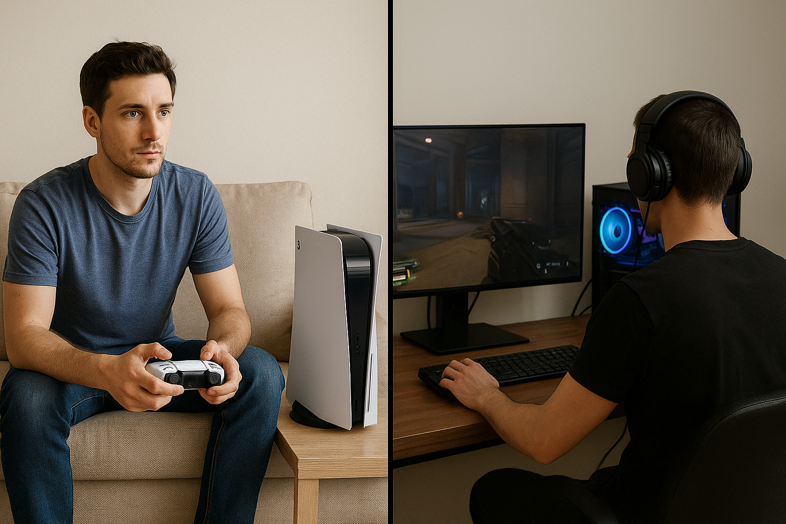 PS5の最大の魅力は「電源を入れればすぐ遊べるシンプルさ」です。コントローラーを手に、ソファに座って気軽に楽しむ時間はまさに至福。一方PCは、144Hzや240Hzといった高リフレッシュレート、ウルトラワイドモニター、キーボード&マウスなど、操作性と没入感を極限まで高められるのが強みです。両方を持っていれば、「友達と集まるときはPS5」「ひとりで勝負に集中するときはPC」と、シーンごとに最適な環境を選べます。気分や目的で切り替えられる自由度は、想像以上に快適です。